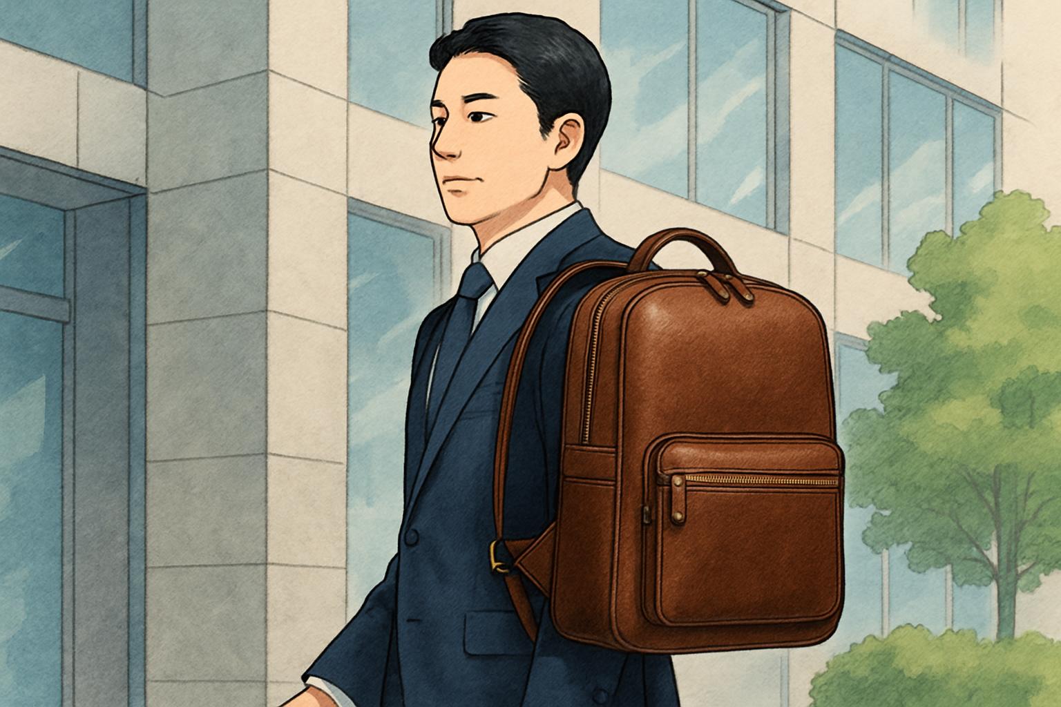 レザーリュックをビジネスシーンで使うなら、スーツやジャケットスタイルに違和感なく溶け込む品格のあるデザインが求められます。カジュアルすぎるデザインは避け、あくまで「鞄」としての佇まいを感じさせるものを選びましょう。服装や勤務先の雰囲気に合わせて、悪目立ちしない上品でシンプルなデザインを選ぶことが、大人のビジネスマンとしての信頼感を演出する鉄則です。
